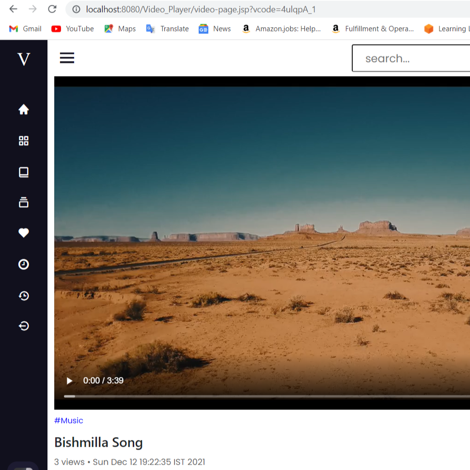 in this project you can watch videos and like dislike favourite and subscribe unsubscribe channel and also you can comment. In this site you can create your channel and upload video also.... read more